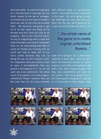 The first part of the book is an extensive documented graphical pictorial grow guide based on a 6 hour DVD set made whilst working on behalf of the University of London.  This University holds a Home Office License to cultivate cannabis for medical research.  The doctors, without sounding cruel, are not botanically blessed with green fingers so some 5 years ago we were called upon to help design, construct, and install a fully operational  hydroponics grow room.  We were then asked to help grow top quality cannabis for the University to ensure high active ingredients for their medical studies.  As well as educating them on the finer art of growing plants hydroponically, we got to test certain methods and techniques, shifting the shit from shinola so we got to expose the fact from fiction.